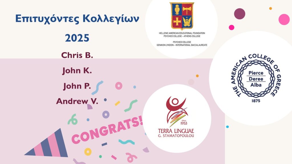 Our teachers have for decades been preparing candidates with absolute success for their entry into Athens College and Pierce College ACG . The course includes covering the syllabus of the exams and a large number of practice tests, authentic material produced by our experienced teachers. The students also participate in mock exams every month in order to assess their progress and ensure their exam readiness.